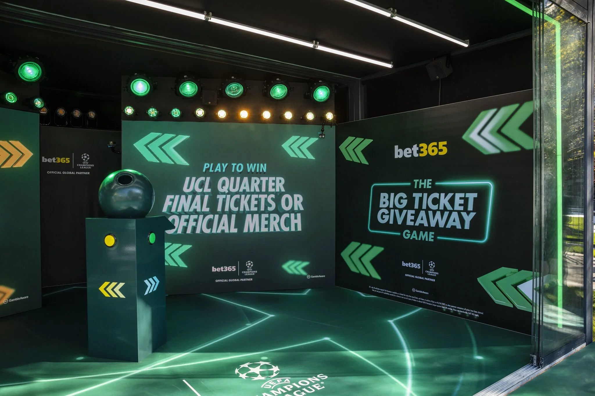 The latest chapter landed at BOXPARK Wembley with the first-ever Big Ticket Quizaway. Working alongside PR agency Hatch, we turned the venue into a full Champions League takeover — designing banners, stage graphics, screens and in-game assets, Fooseball tables and more, all built from the Big Ticket Giveaway identity.